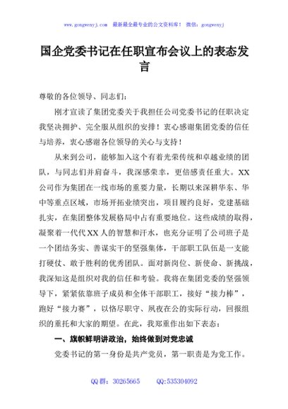 未生成预览图,长按二维码添加 国企党委书记在任职宣布会议上的表态发言 - 公文研究