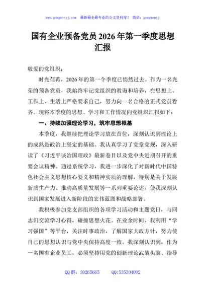 / 国有企业预备党员2026年第一季度思想汇报