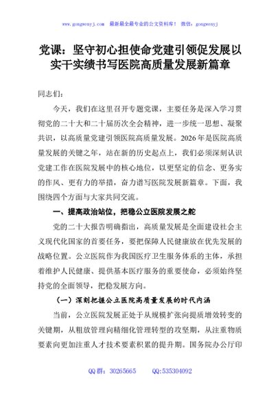 党课:坚守初心担使命党建引领促发展以实干实绩书写医院高质量发展新篇章