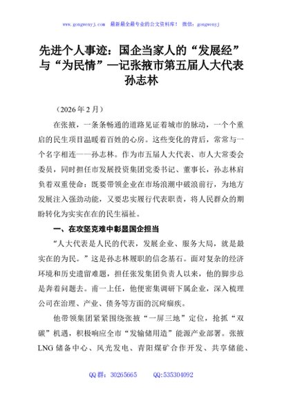 先进个人事迹:国企当家人的“发展经”与“为民情”—记张掖市第五届人大代表孙志林