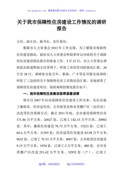 / 关于我市保障性住房建设工作情况的调研报告