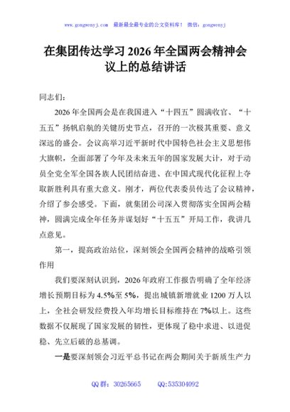 / 在集团传达学习2026年全国两会精神会议上的总结讲话