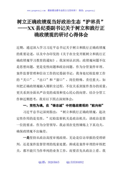 / 树立正确政绩观当好政治生态“护林员”——XX县纪委副书记关于树立和践行正确政绩观的研讨心得体会