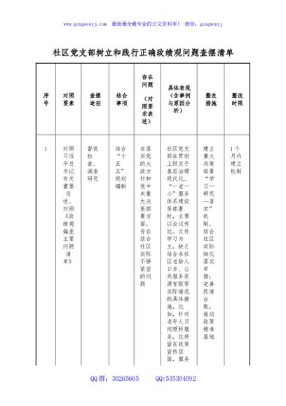 / 社区党支部树立和践行正确政绩观问题查摆清单