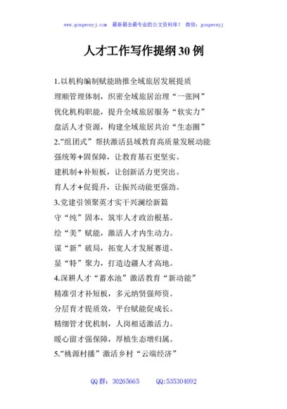 / 人才工作写作提纲30例
