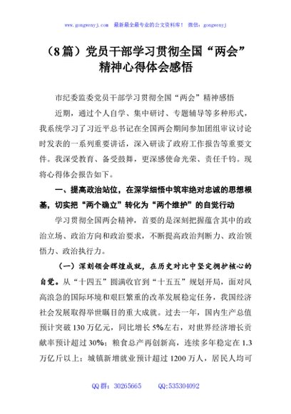 / (8篇)党员干部学习贯彻全国“两会”精神心得体会感悟