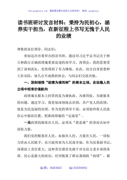 / 读书班研讨发言材料:秉持为民初心,涵养实干担当,在新征程上书写无愧于人民的业绩