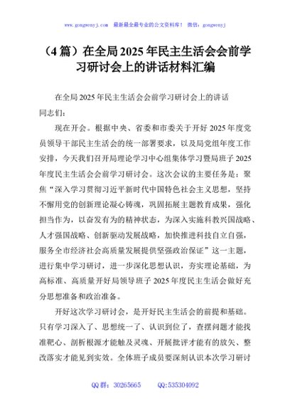 / (4篇)在全局2025年民主生活会会前学习研讨会上的讲话材料汇编