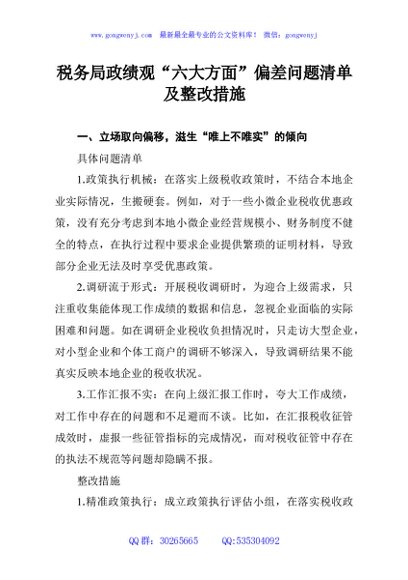 / 税务局政绩观“六大方面”偏差问题清单及整改措施