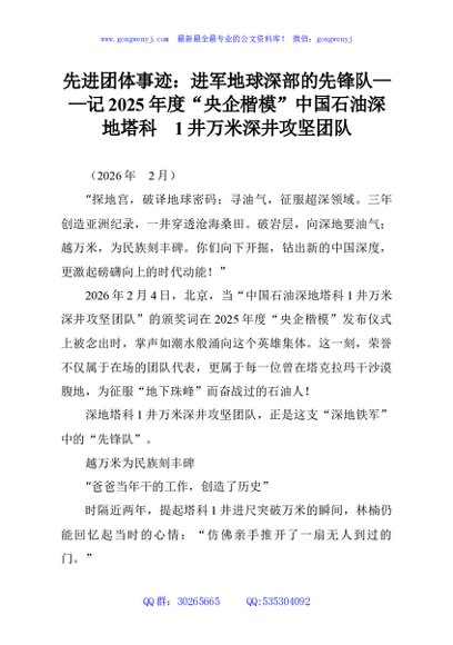 / 先进团体事迹:进军地球深部的先锋队——记2025年度“央企楷模”中国石油深地塔科1井万米深井攻坚团队