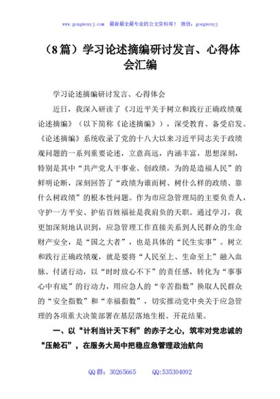 / (8篇)学习论述摘编研讨发言、心得体会汇编