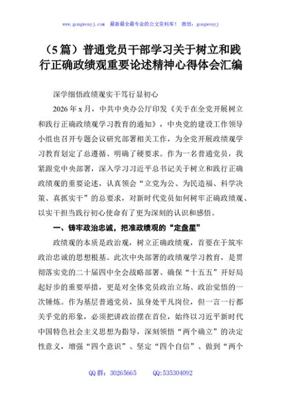 / (5篇)普通党员干部学习关于树立和践行正确政绩观重要论述精神心得体会汇编