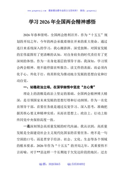 / 学习2026年全国两会精神感悟