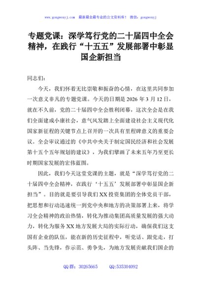 / 专题党课:深学笃行党的二十届四中全会精神,在践行“十五五”发展部署中彰显国企新担当