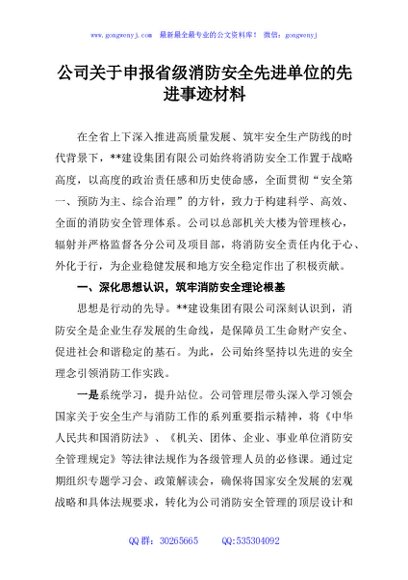 / 公司关于申报省级消防安全先进单位的先进事迹材料