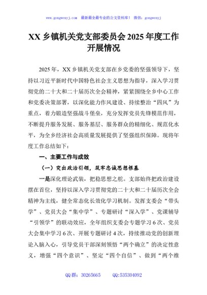 / XX乡镇机关党支部委员会2025年度工作开展情况