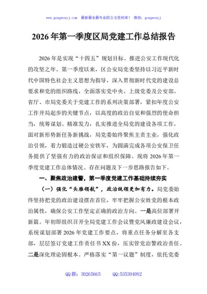 / 2026年第一季度区局党建工作总结报告