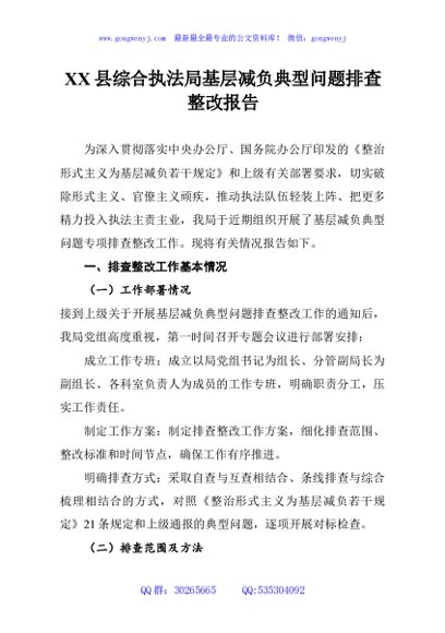 / XX县综合执法局基层减负典型问题排查整改报告