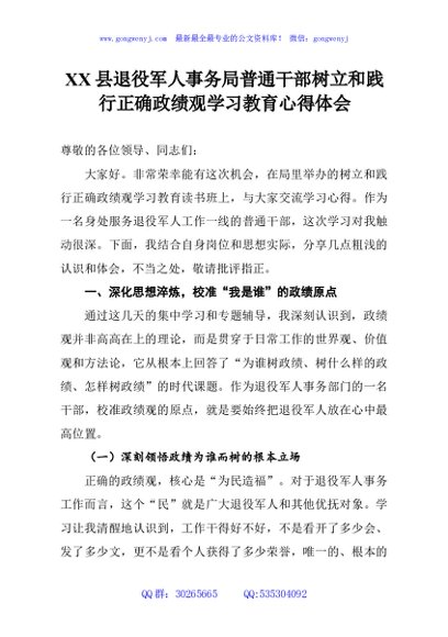 / XX县退役军人事务局普通干部树立和践行正确政绩观学习教育心得体会