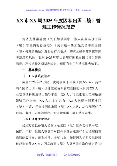 / XX市XX局2025年度因私出国(境)管理工作情况报告