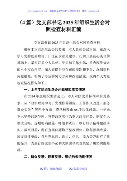 / (4篇)党支部书记2025年组织生活会对照检查材料汇编