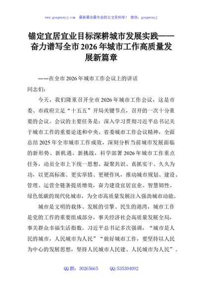 锚定宜居宜业目标深耕城市发展实践——奋力谱写全市2026年城市工作高质量发展新篇章 - 公文研究