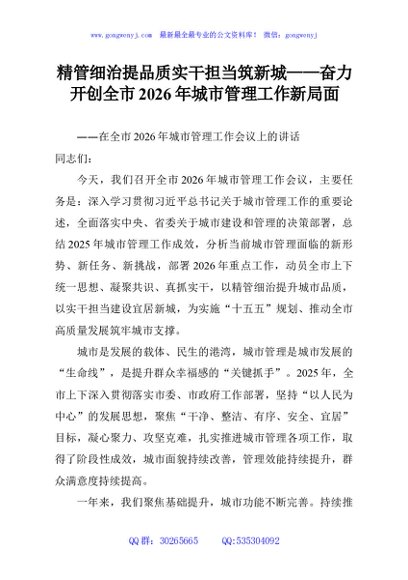 / 精管细治提品质实干担当筑新城——奋力开创全市2026年城市管理工作新局面