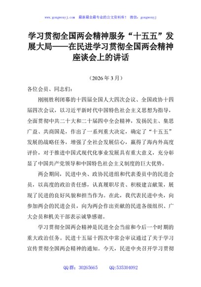 / 学习贯彻全国两会精神服务“十五五”发展大局——在民进学习贯彻全国两会精神座谈会上的讲话
