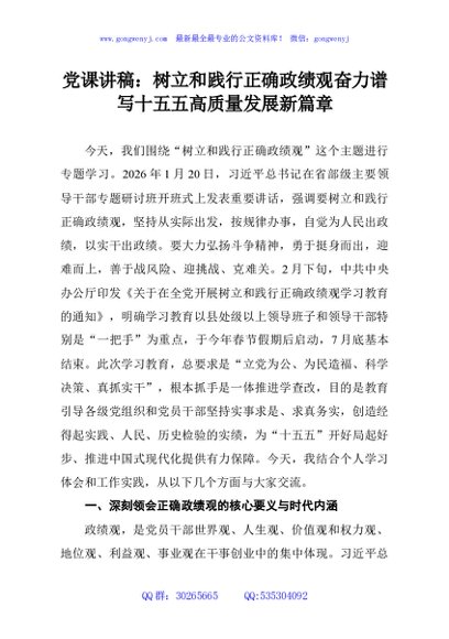 / 党课讲稿:树立和践行正确政绩观奋力谱写十五五高质量发展新篇章