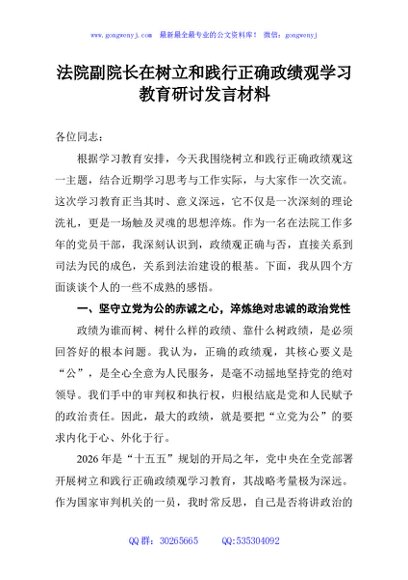 / 法院副院长在树立和践行正确政绩观学习教育研讨发言材料