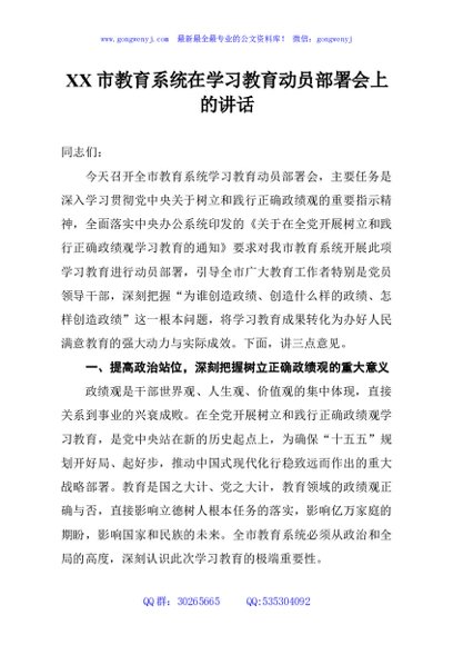 / XX市教育系统在学习教育动员部署会上的讲话