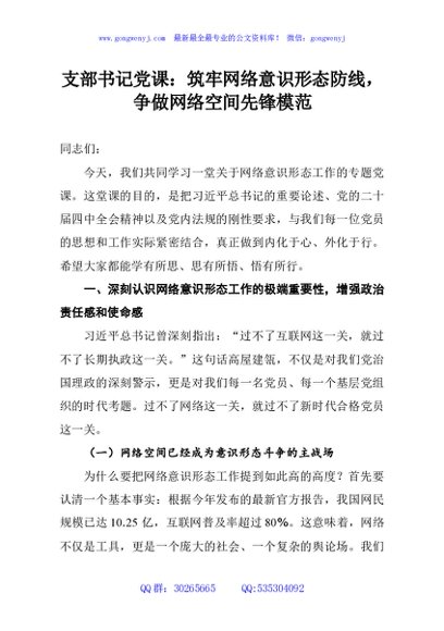 / 支部书记党课:筑牢网络意识形态防线,争做网络空间先锋模范