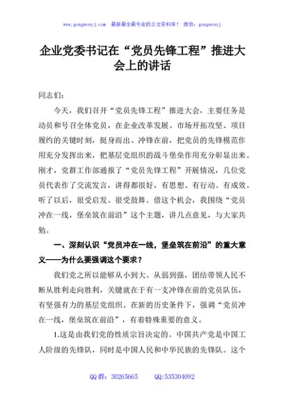 未生成预览图,长按二维码添加 企业党委书记在“党员先锋工程”推进大会上的讲话 - 公文研究