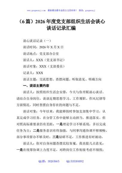/ (6篇)2026年度党支部组织生活会谈心谈话记录汇编