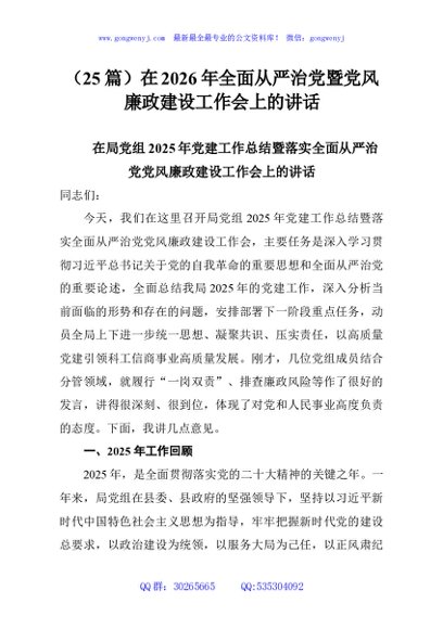 / (25篇)在2026年全面从严治党暨党风廉政建设工作会上的讲话