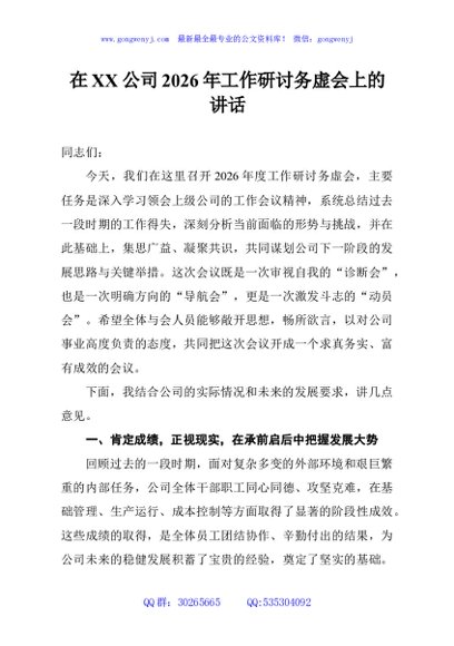 / 在XX公司2026年工作研讨务虚会上的讲话