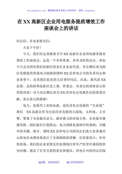 / 在XX高新区企业用电服务提质增效工作座谈会上的讲话