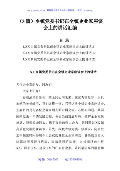 (3篇)乡镇党委书记在全镇企业家座谈会上的讲话汇编