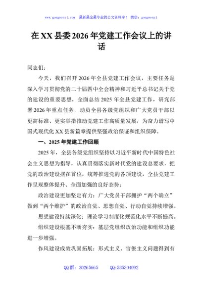 / 在XX县委2026年党建工作会议上的讲话