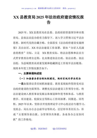 / XX县教育局2025年法治政府建设情况报告