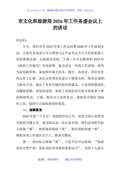 / 市文化和旅游局2026年工作务虚会议上的讲话
