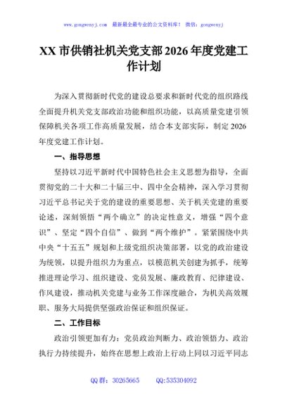 / XX市供销社机关党支部2026年度党建工作计划