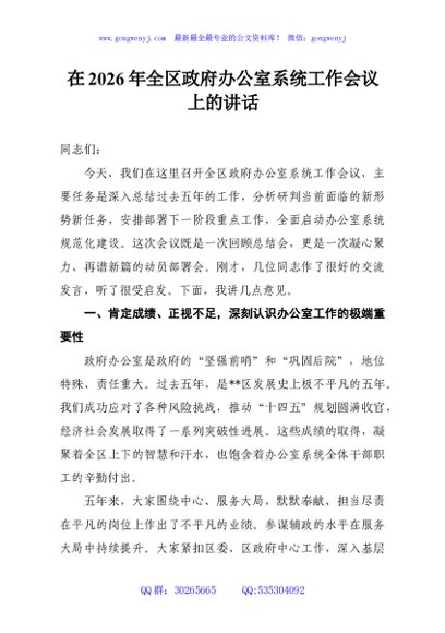 / 在2026年全区政府办公室系统工作会议上的讲话