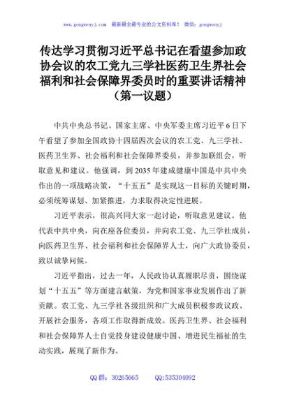 传达学习贯彻习近平总书记在看望参加政协会议的农工党九三学社医药卫生界社会福利和社会保障界委员时的重要讲话精神(第一议题)