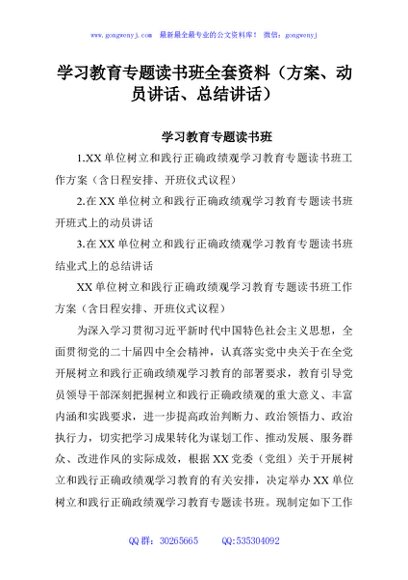 / 学习教育专题读书班全套资料(方案、动员讲话、总结讲话)