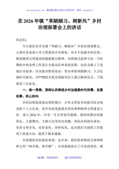 / 在2026年镇“革陋陋习、树新风”乡村治理部署会上的讲话