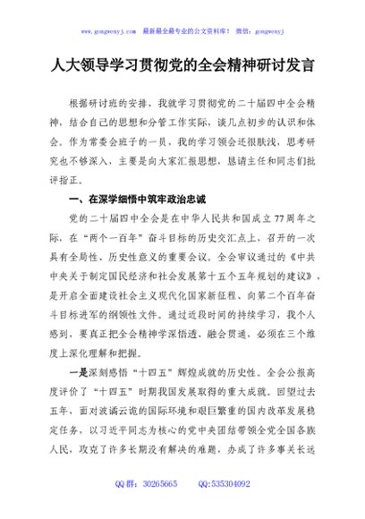 / 人大领导学习贯彻党的全会精神研讨发言