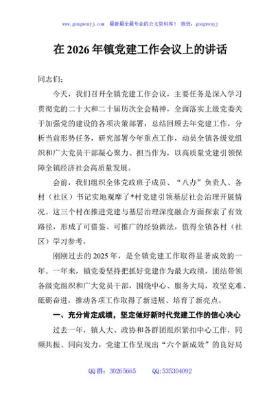 / 在2026年镇党建工作会议上的讲话