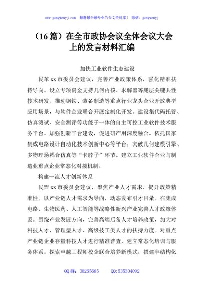 (16篇)在全市政协会议全体会议大会上的发言材料汇编