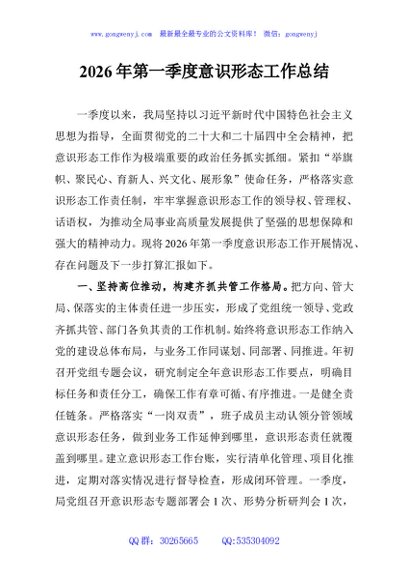 / 2026年第一季度意识形态工作总结